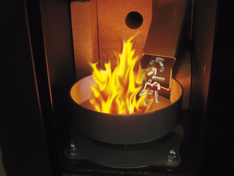 Heizbetrieb wahlweise mit Stückholz oder Pellets