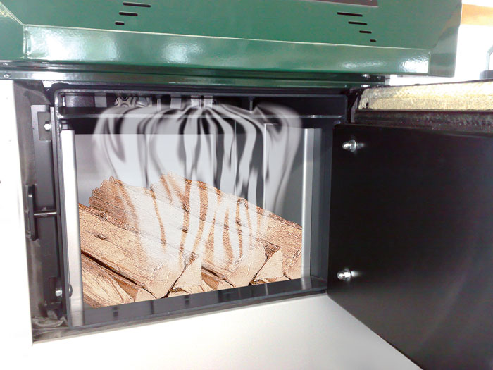 Durch die separaten Brennkammern kann flexibel, je nach Bedarf, zwischen Scheitholz- und